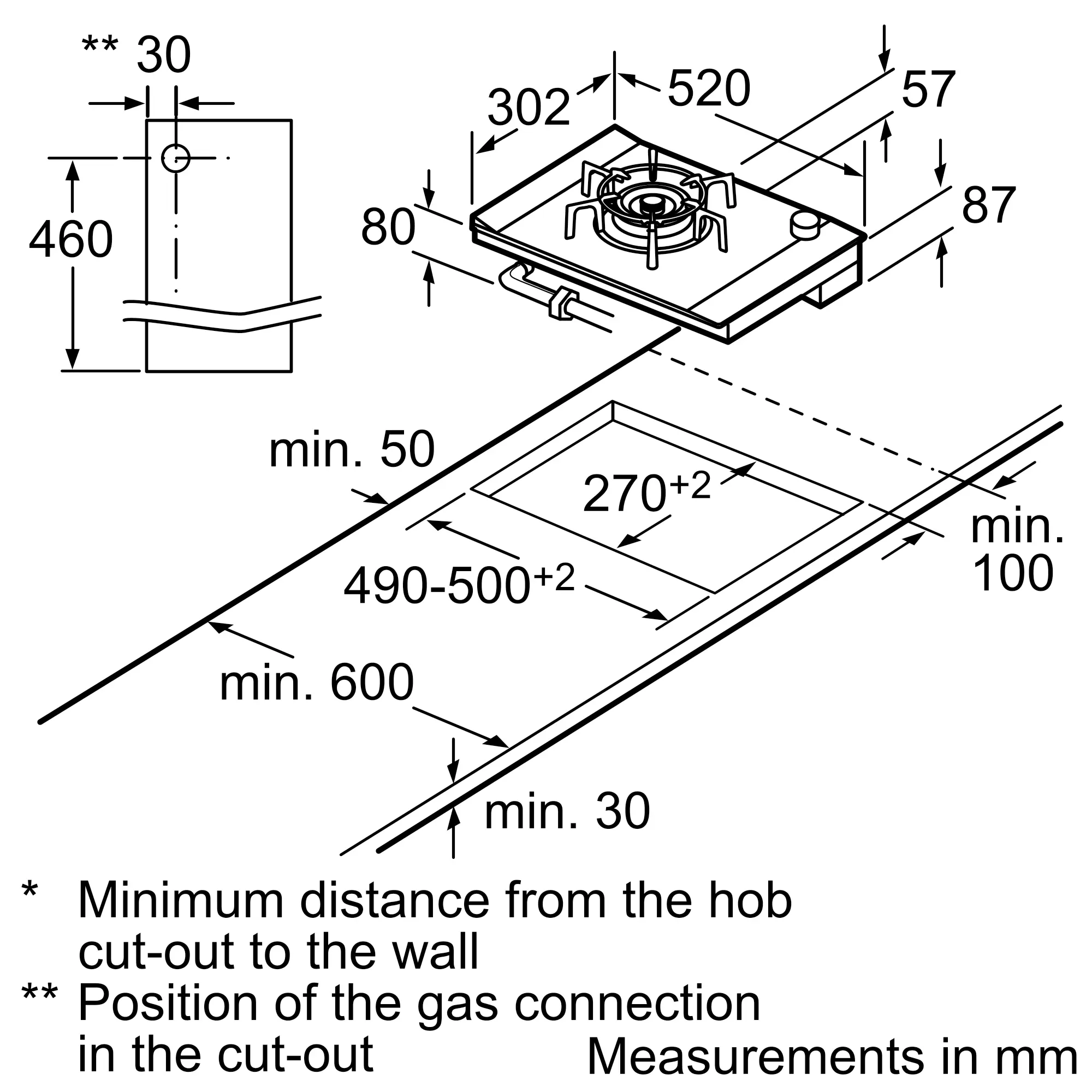 30厘米寬的氣體煮食爐可與其他Domino或嵌入式設計爐具一併安裝,自訂一個完美的烹飪組合。