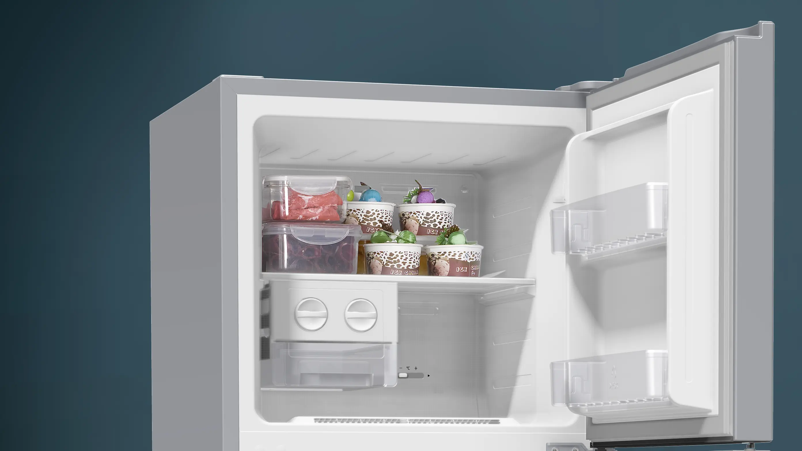鮮果和蔬菜貯存於波浪形底部的2個保鮮格份外爽脆