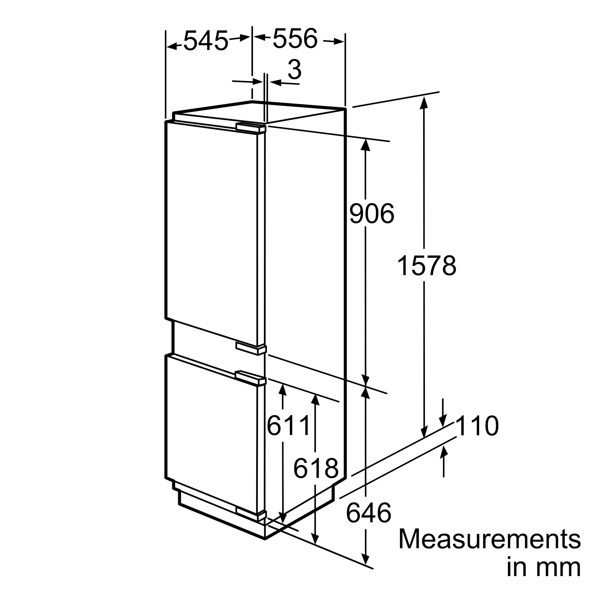 iQ700 built-in fridge-freezer with freezer at bottom 157.8 x 55.6 cm soft close flat hingeKI28NP60HK